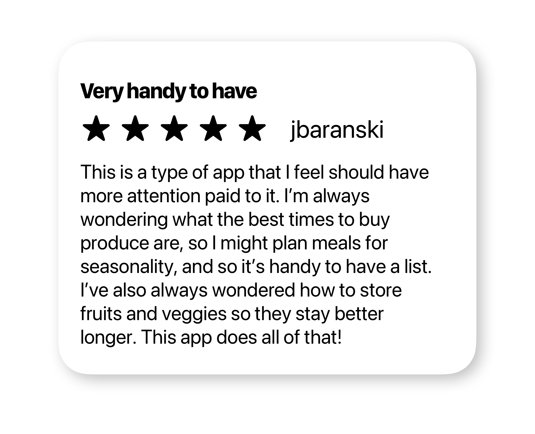This app helps you eat with the seasons — making it easier to enjoy fresh, local produce all year round. You’ll also find practical tips on how to store your food properly, so you can cut down on waste and save money while eating smarter.